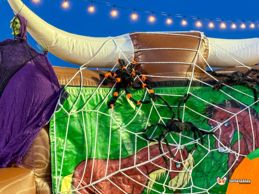- The Safety Ground: A massive, brightly themed Western inflatable safety bed (15ft diameter) surrounds the bull, ensuring every dismount is soft, cushioned, and perfectly safe.